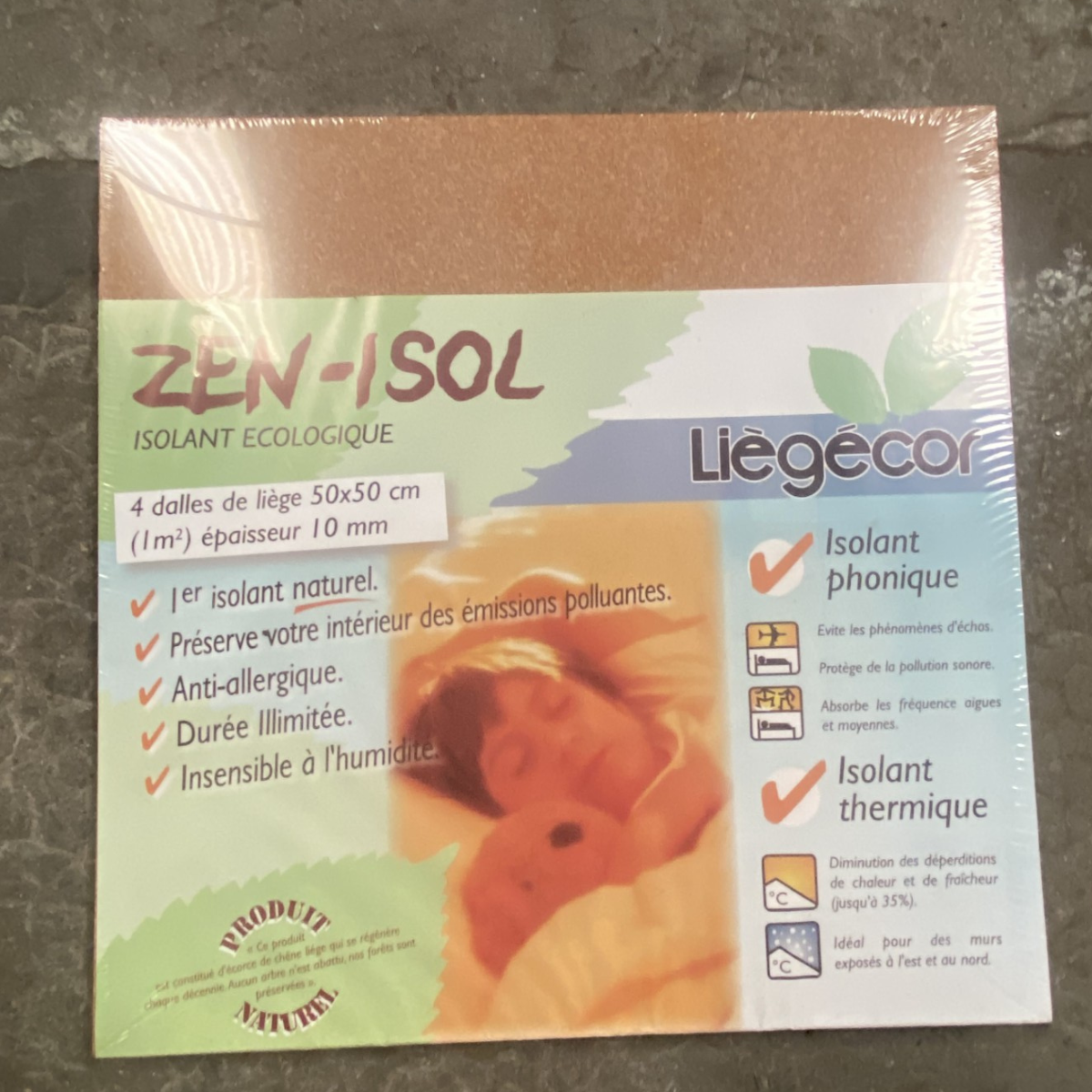 Panneaux muraux en liège ZEN ISOL ACOUSTIQUE – format 50×50 cm, épaisseur 10 mm. Solution isolante phonique et thermique décorative. Revêtement mural naturel et technique.